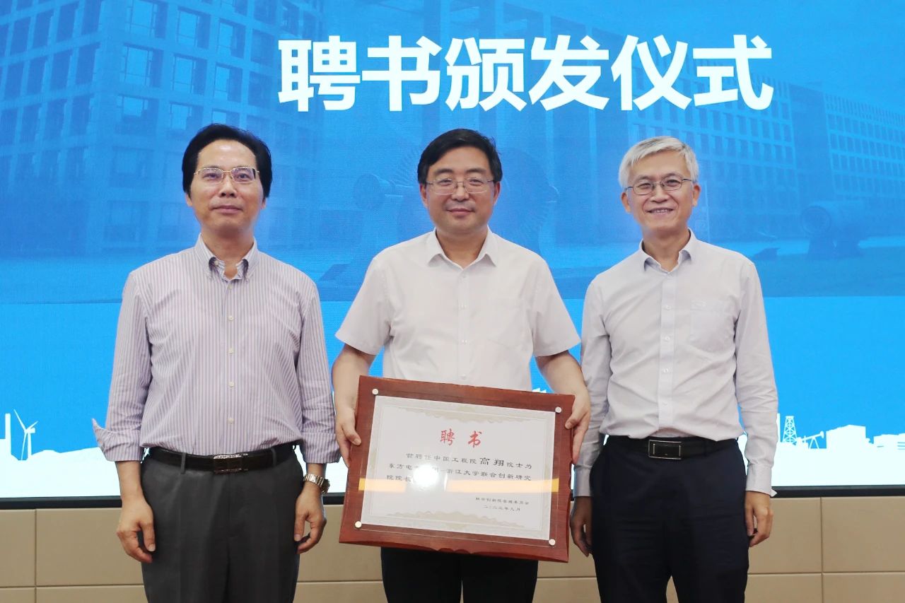 尊龙人生就是博ag电气集团党组成员、副总经理张彦军宣布联合创新研究院管理委员会、院领导班子、专家委员会和技术委员会名单,并与浙江大学副校长黄先海共同为联合创新研究院院长、中国工程院院士高翔颁发聘书。